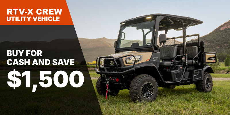 RTV-X Crew Rebate of $1,500.00 available on cash purchases of a new RTV-X Crew only. Offer valid until 06-30-2026.