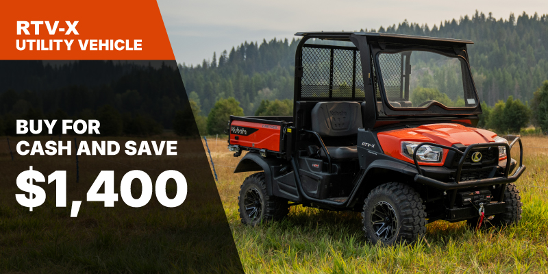 RTV-X Rebate of $1,400.00 available on cash purchases of a new RTV-X only. Offer valid until 06-30-2026.